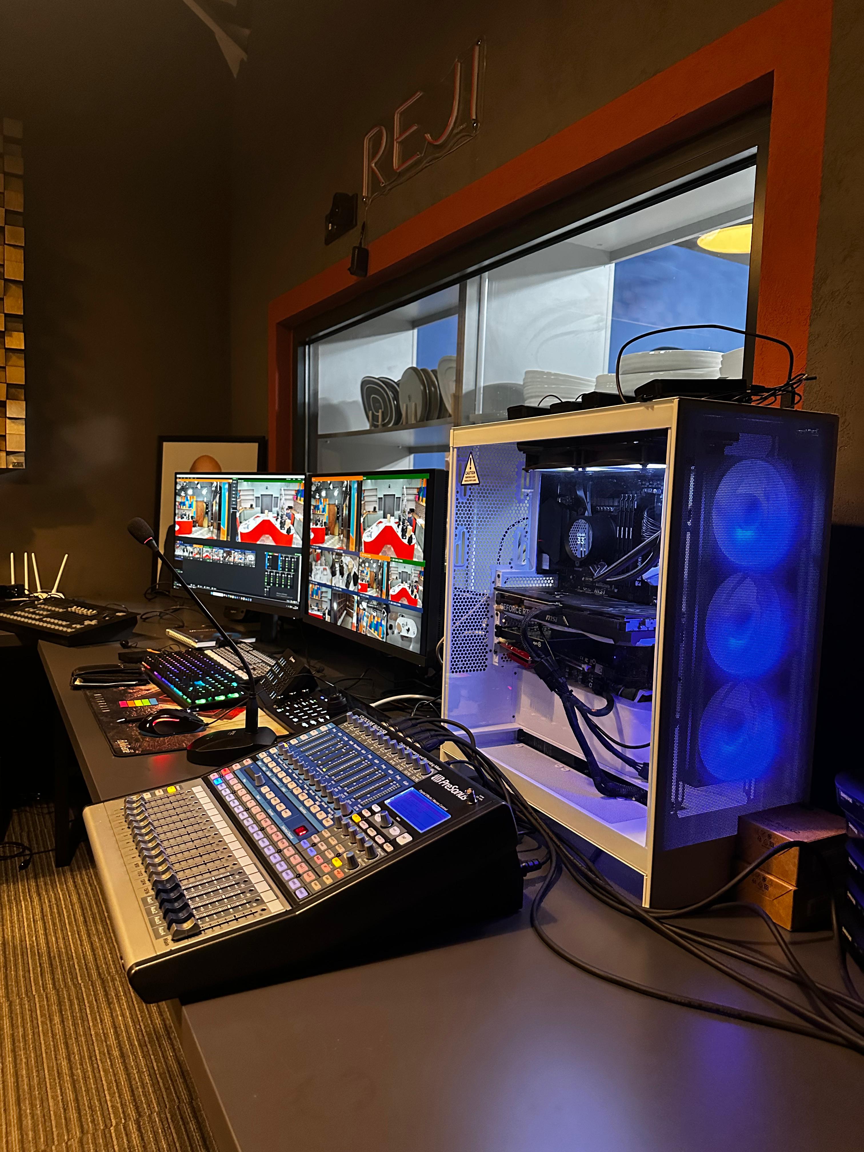 Stüdyonun prodüksiyon merkezi olarak vMix 4K yazılımı tercih edilmiştir. vMix 4K sayesinde;