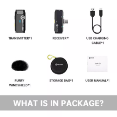 Kablosuz Mikrofon Sistemini kullanarak mobil gazetecilik veya içerik oluşturma uygulamaları için Lightning donanımlı iOS mobil cihazınıza eller serbest ses kaydedin . Sistemde yerleşik, çok yönlü mikrofona sahip bir verici ve bir çift kanallı alıcı bulunur; her ikisi de kompakt form faktörlerine sahiptir. Vericinin arkasındaki klips, onu bir gömleğin yakasına takmanıza olanak tanırken, fişli alıcı doğrudan akıllı telefonunuz veya tabletinizdeki Lightning bağlantı noktasına takılır ve bu da ona güç sağlar.